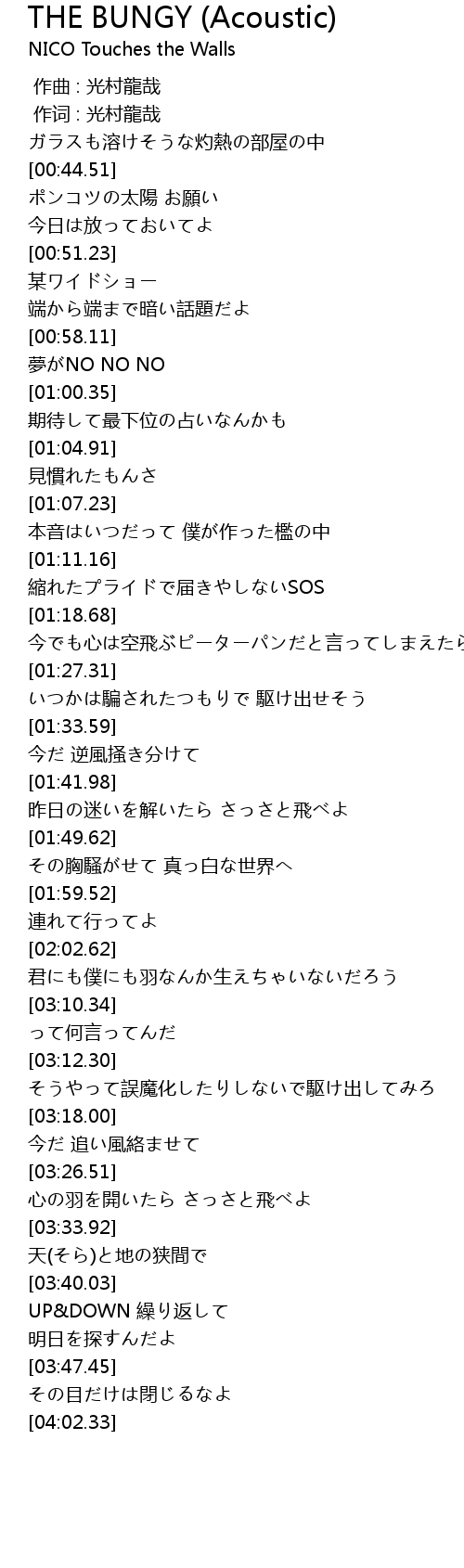 | [03:05.41] | 君にも僕にも羽なんか生えちゃいないだろう |