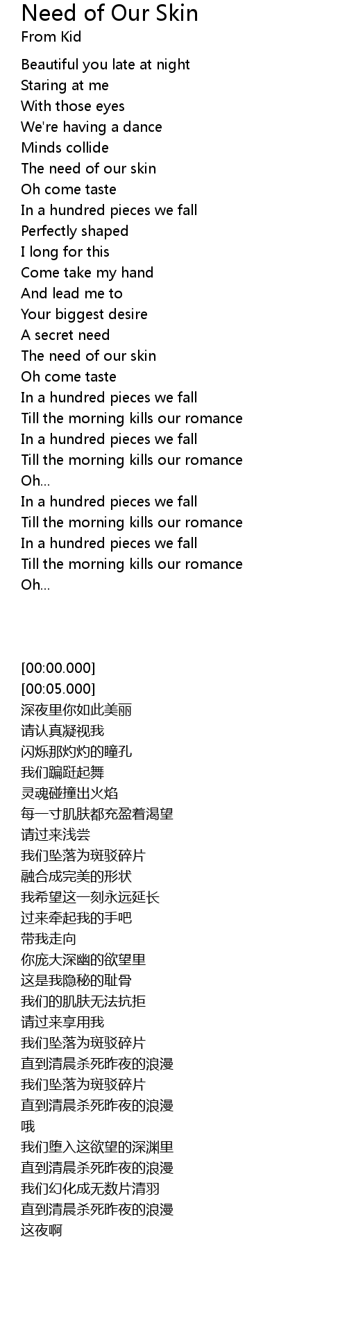 Need of Our Skin Lyrics