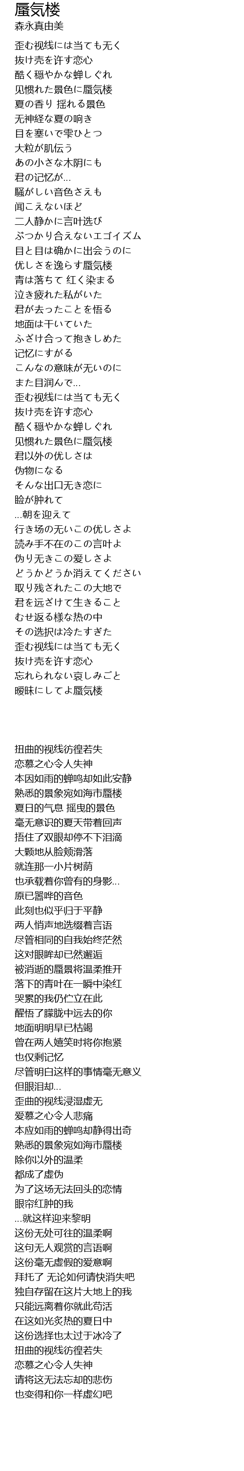 | [02:04.330] | 见惯れた景色に蜃気楼 |