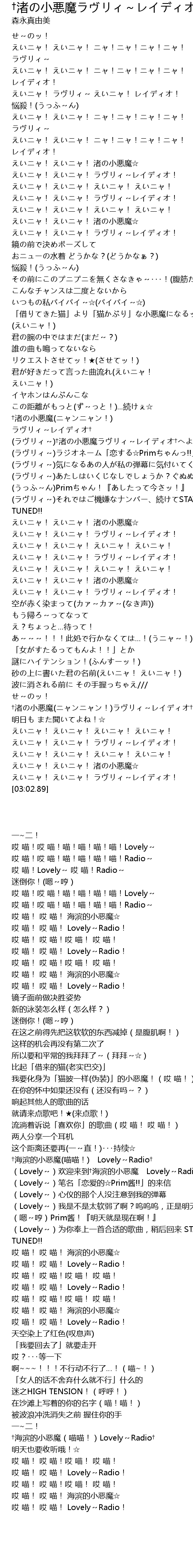 | [01:22.96] | (ラヴリィ~)†渚の小悪魔ラヴリィ~レイディオ†へようこそ! |