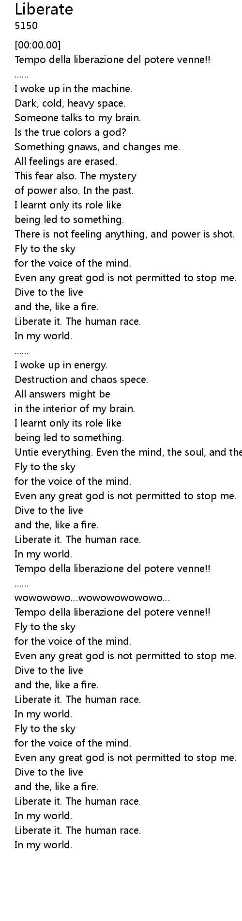 | [02:29.05] | Tempo della liberazione del potere venne!! |