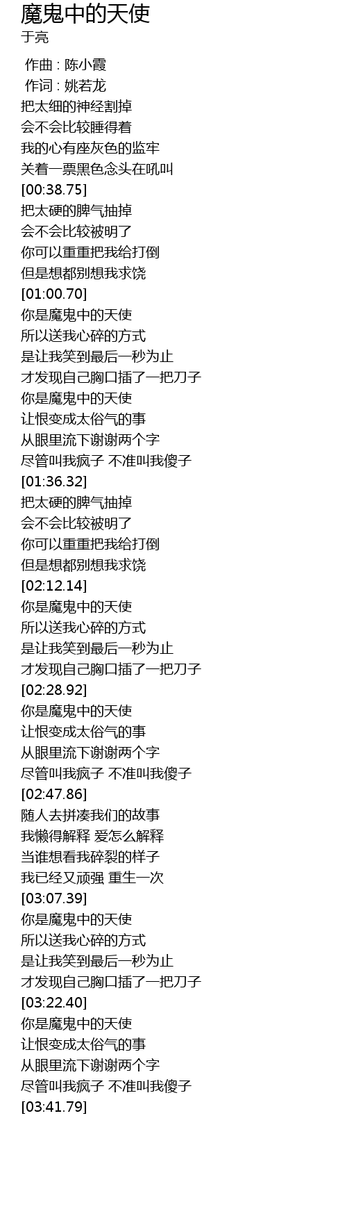| [03:22.88] | 你是魔鬼中的天使 |