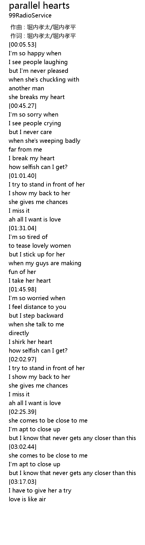 | [00:00.00] | 作曲 : 堀内孝太/堀内孝平 |