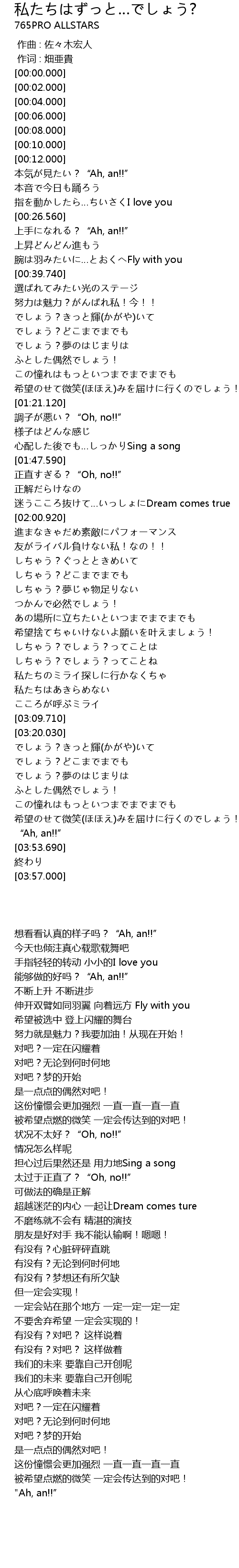| [01:54.550] | 迷うこころ抜けて…いっしょにDream comes true |