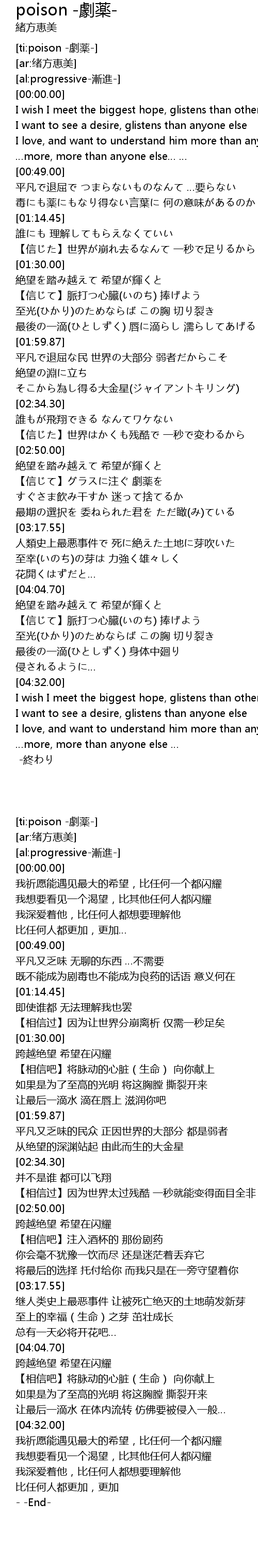 | [02:56.79] | 【信じて】グラスに注ぐ 劇薬を |