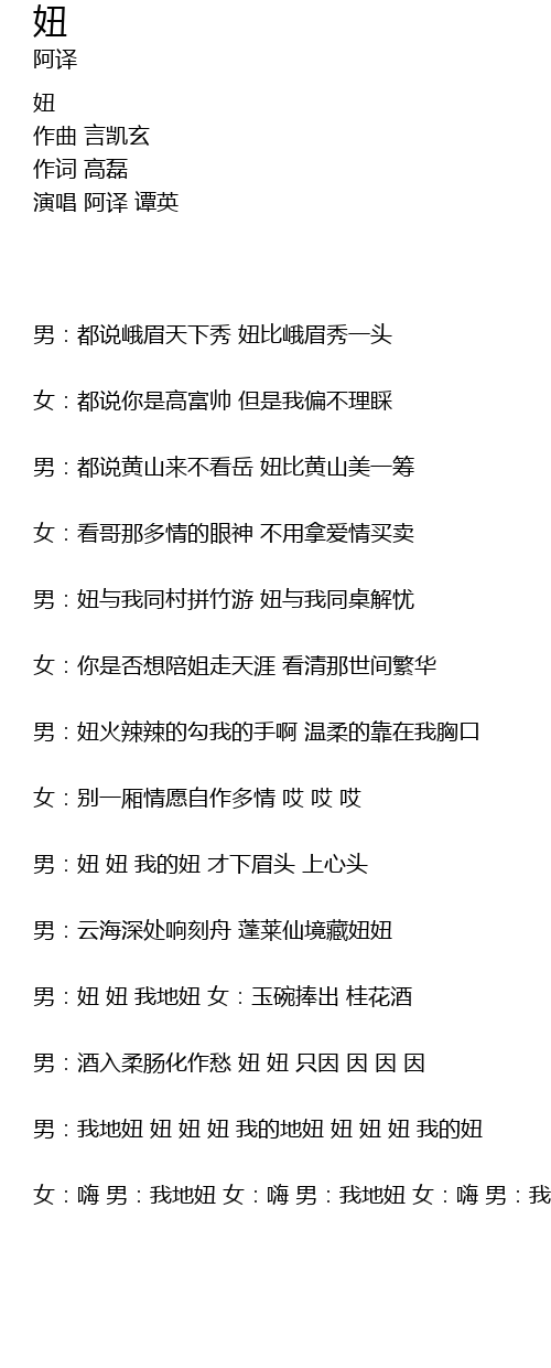 | 男:我地妞 妞 妞 妞 我的地妞 妞 妞 妞 我的妞 | |
