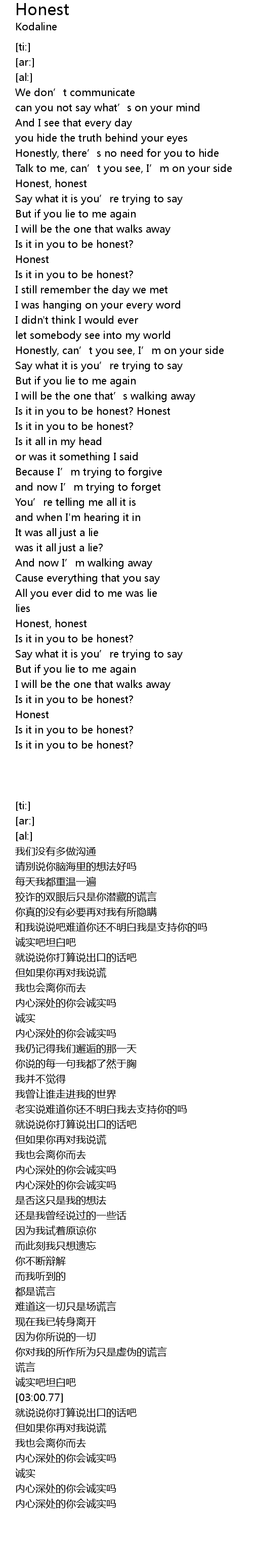 | [01:52.27] | Honestly, can' t you see, I' m on your side |