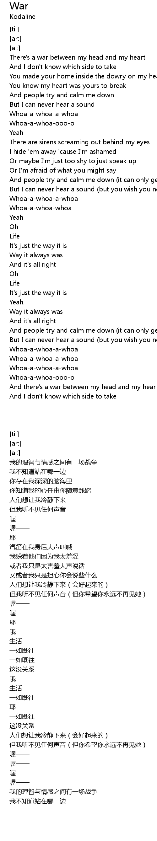 And there's a war between my head and my heart |