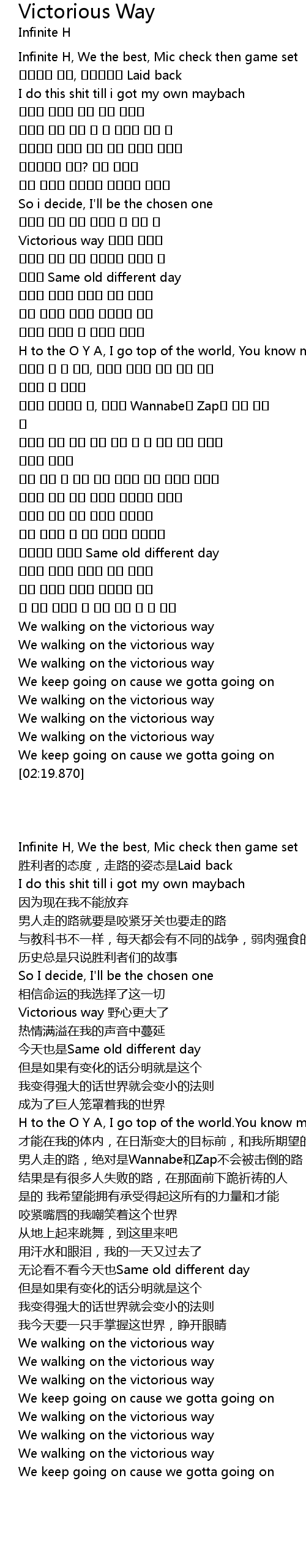 | [00:11.060] | Infinite H, We the best, Mic check then game set |