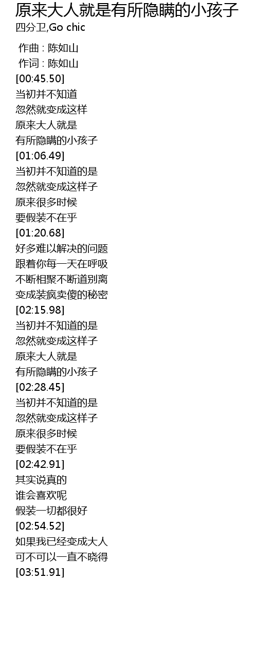 | [01:02.98] | 有所隐瞒的小孩子 |