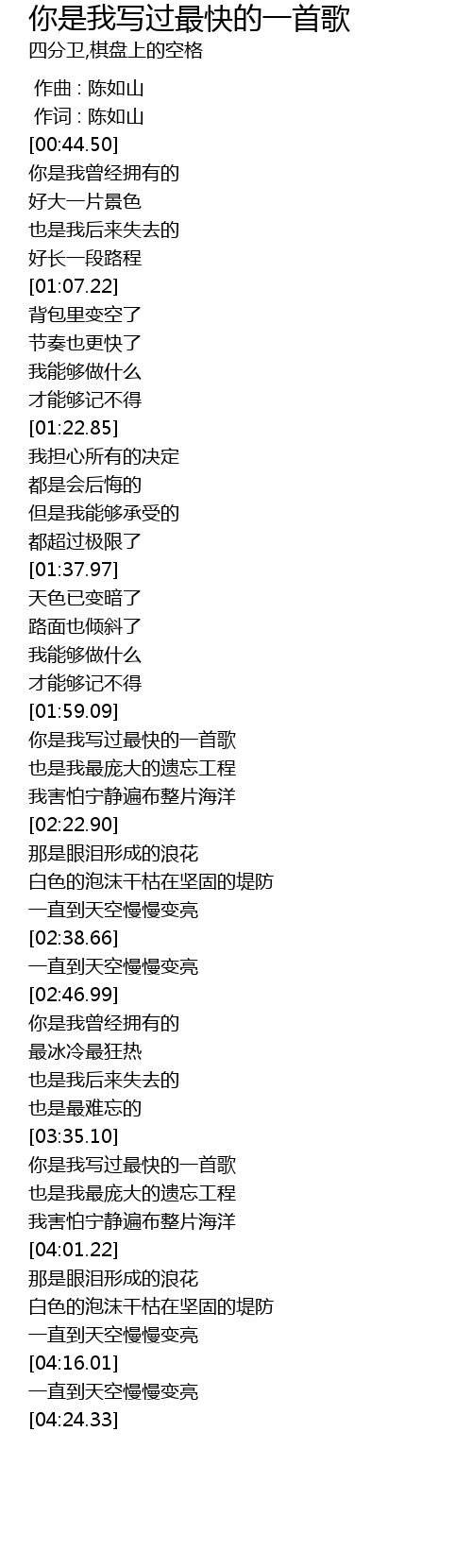 | [03:38.81] | 你是我写过最快的一首歌 |
