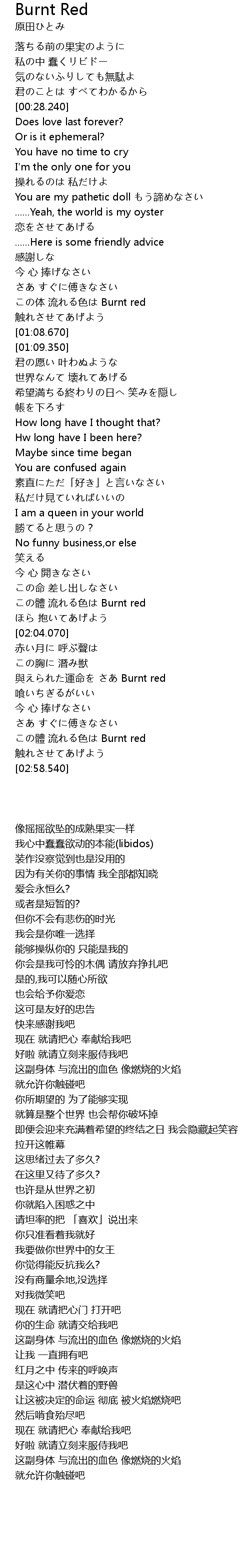| [02:51.240] | この體 流れる色は Burnt red |