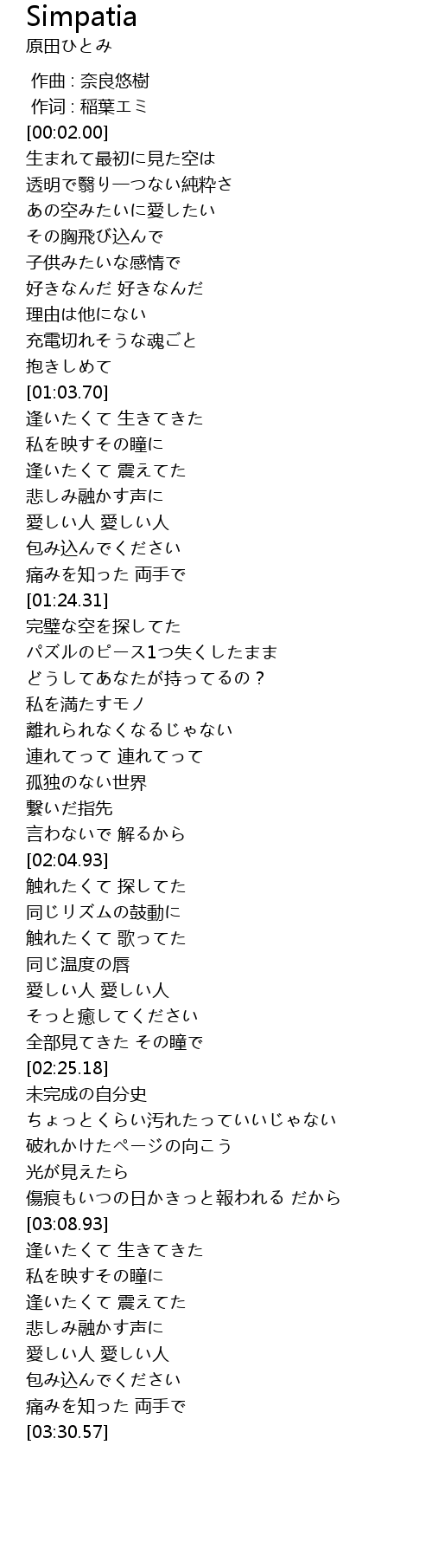 | [00:00.00] | 作曲 : 奈良悠樹 |