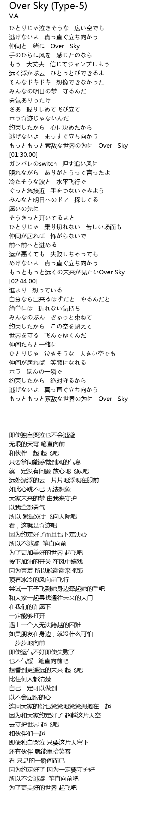 | [04:01.00] | もっともっと素敌な世界の为に Over Sky |