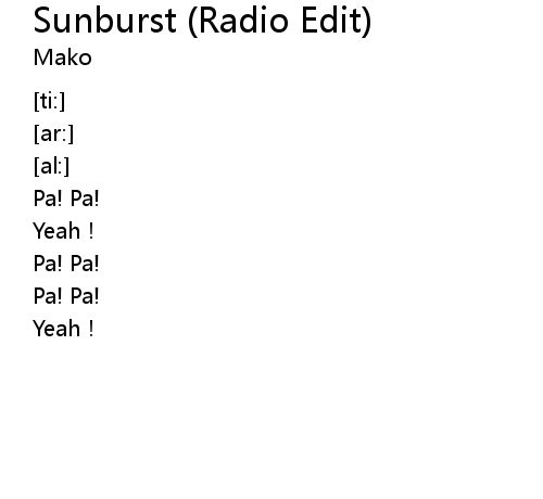 | Album | Sunburst (Radio Edit) |