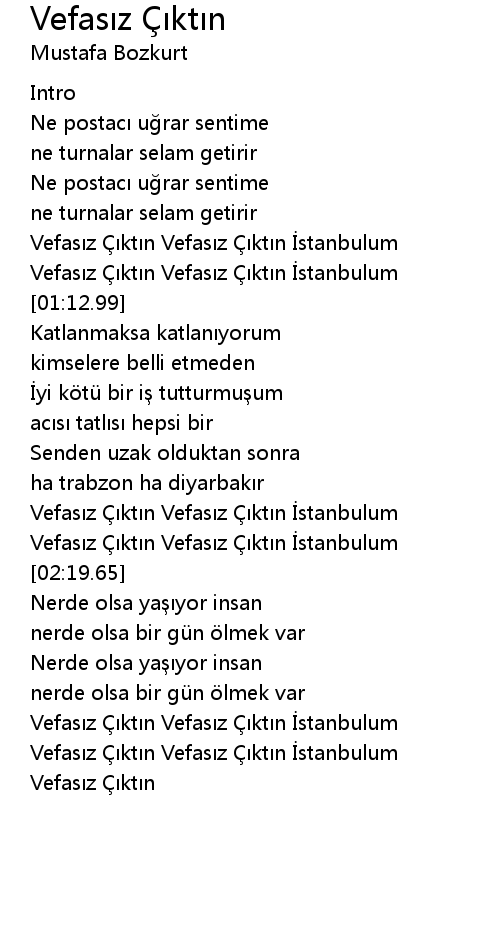 | [03:12.92] | Vefasız Çıktın Vefasız Çıktın İstanbulum |