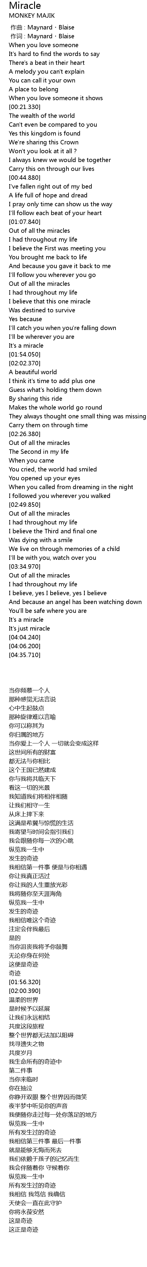 | [04:02.550] | It' s just miracle |