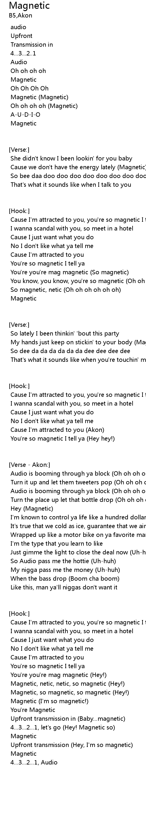| Magnetic, netic, netic, so magnetic (Hey!) | |