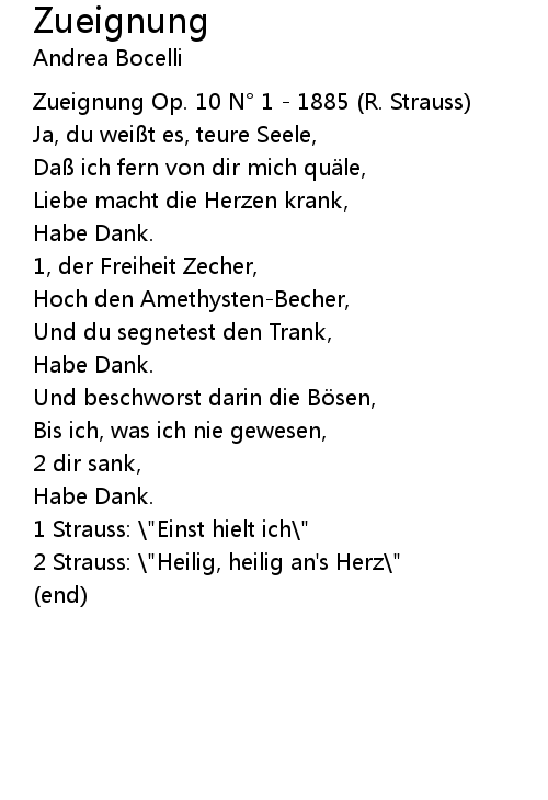 | Zueignung Op. 10 N° 1 - 1885 (R. Strauss) | |