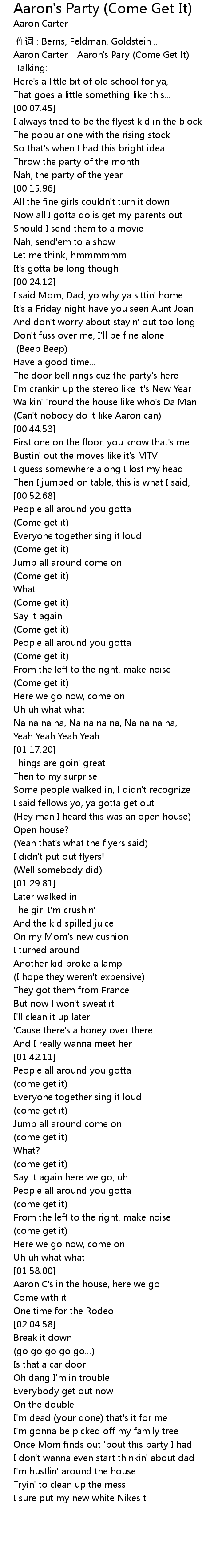 | [00:00.00] | Aaron Carter - Aaron's Pary (Come Get It) |