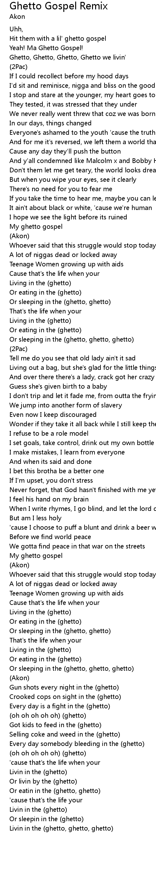 Ghetto, Ghetto, Ghetto, Ghetto we livin'