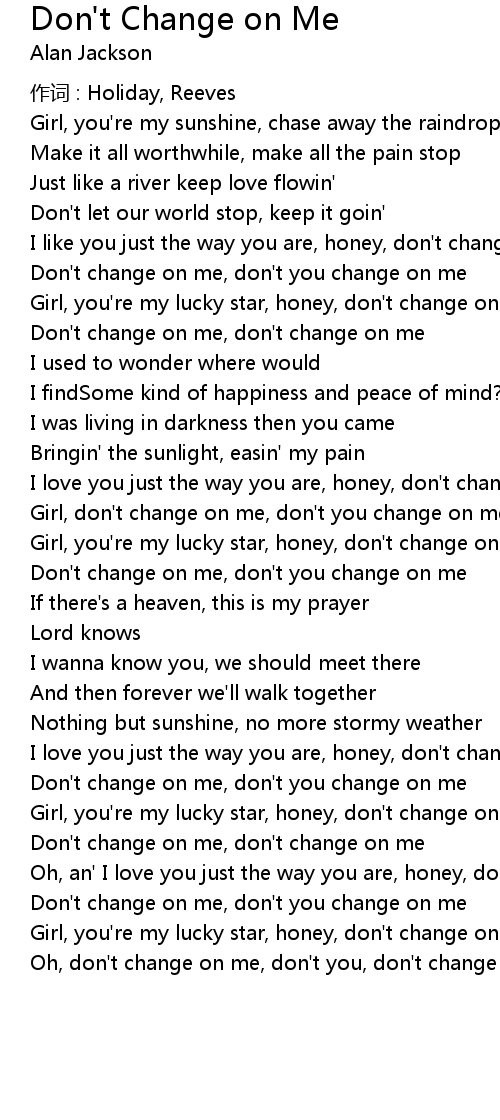 | Girl, you' re my lucky star, honey, don' t change on who you are | |