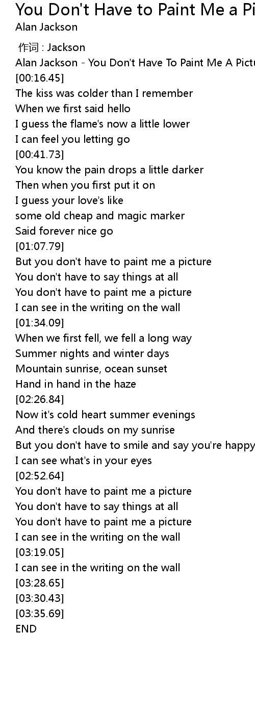| [00:00.00] | Alan Jackson You Don' t Have To Paint Me A Picture |