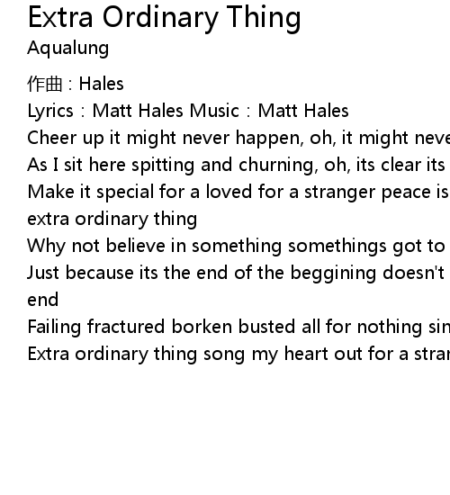 | Extra ordinary thing song my heart out for a stranger extra ordinary thing |