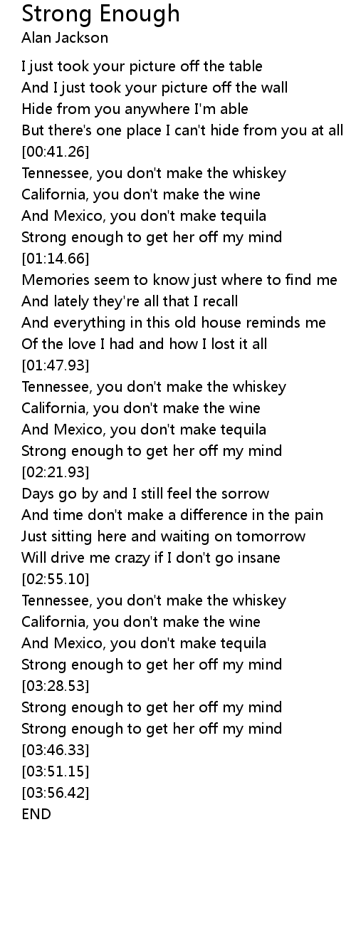 Strong enough to get her off my mind |