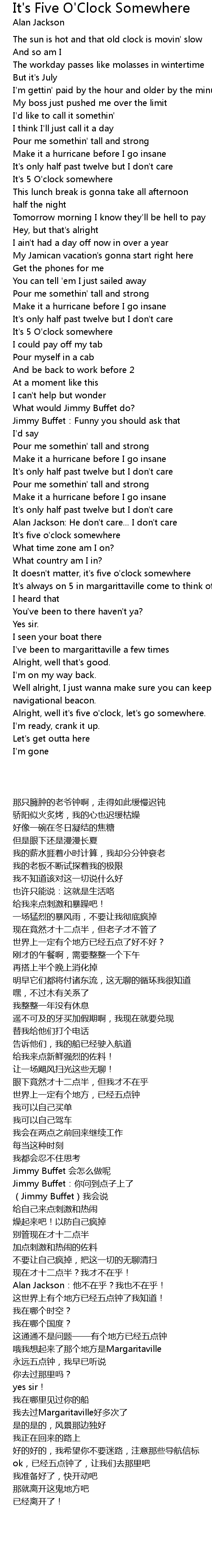 | [00:53.450] | It' s 5 O' clock somewhere |