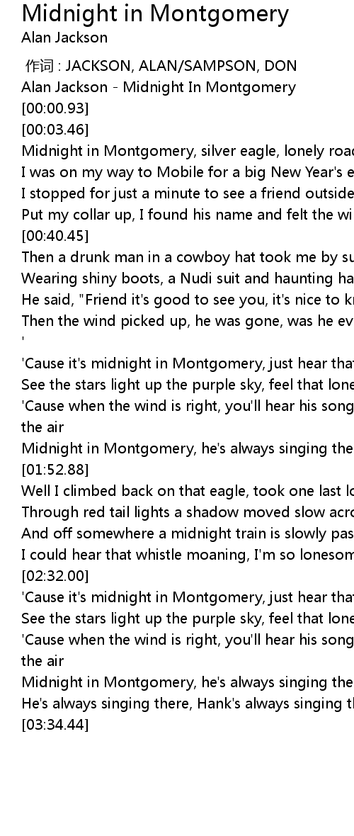| [00:00.00] | Alan Jackson Midnight In Montgomery |