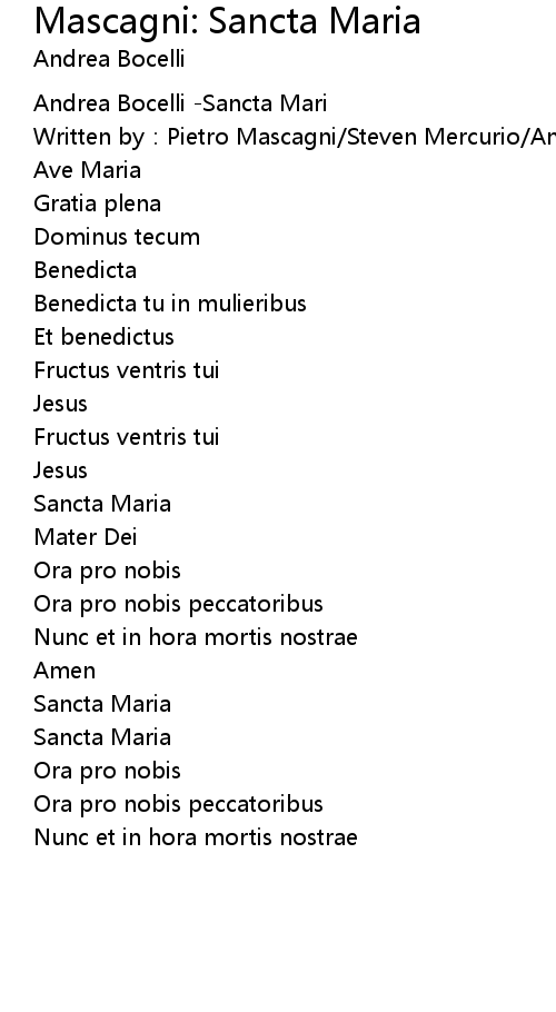 | [00:00.00] | Andrea Bocelli -Sancta Mari |