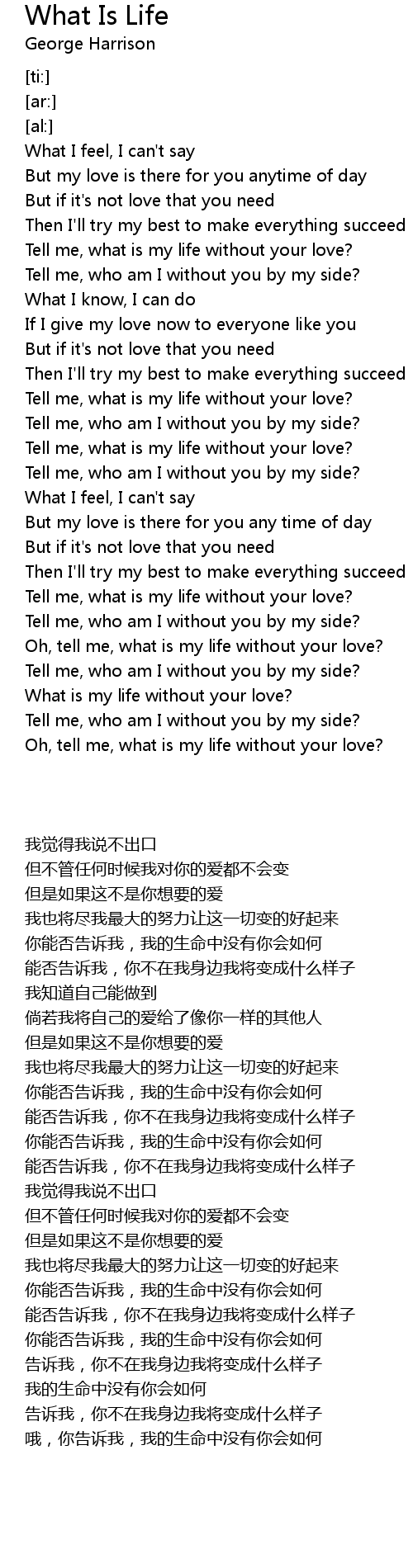 Tell me, what is my life without your love? |