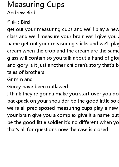 | Song | Measuring Cups |