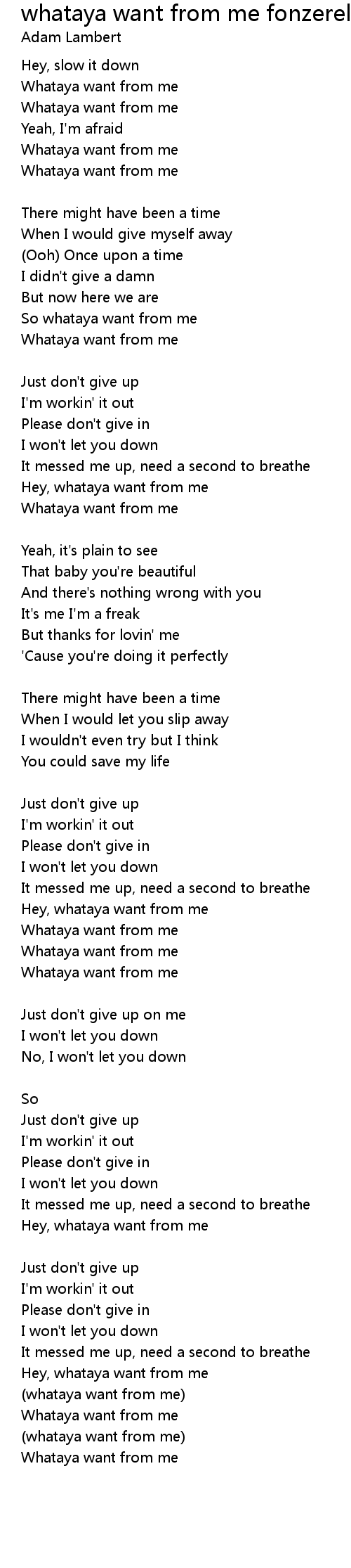 whataya want from me fonzerellis_radio_mix) Lyrics