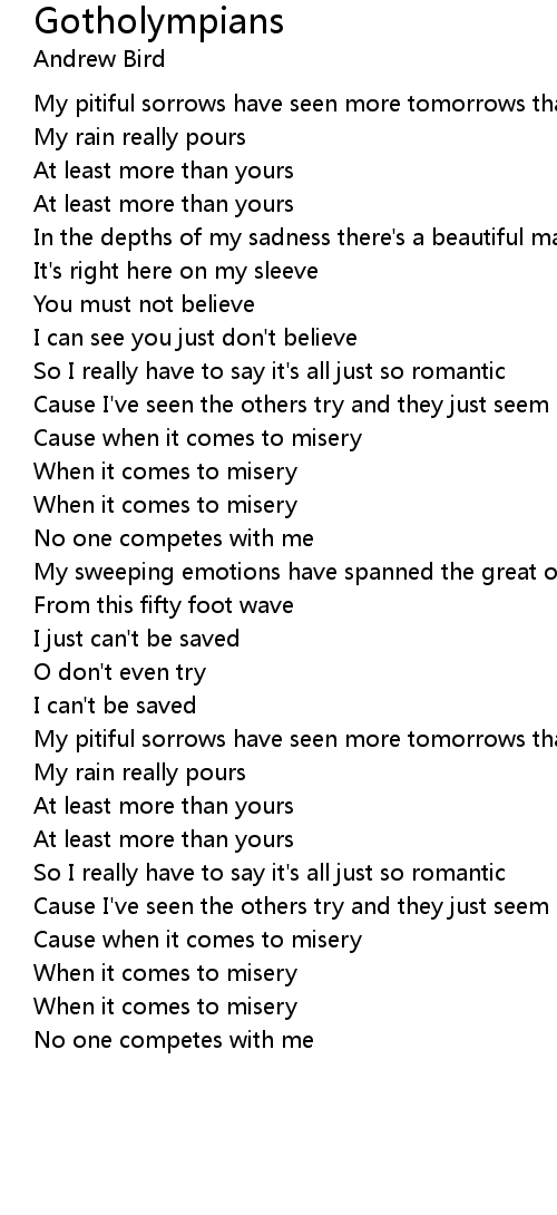 My pitiful sorrows have seen more tomorrows than yours |