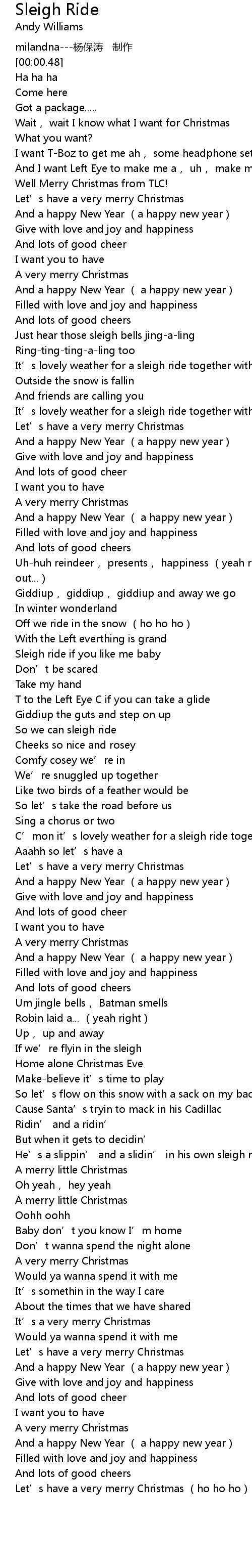 | [02:37.99] | He' s a slippin' and a slidin' in his own sleigh ride |