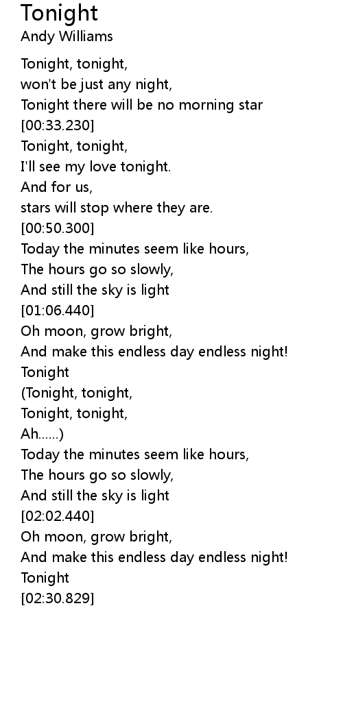 | [00:34.440] | Tonight, tonight, |