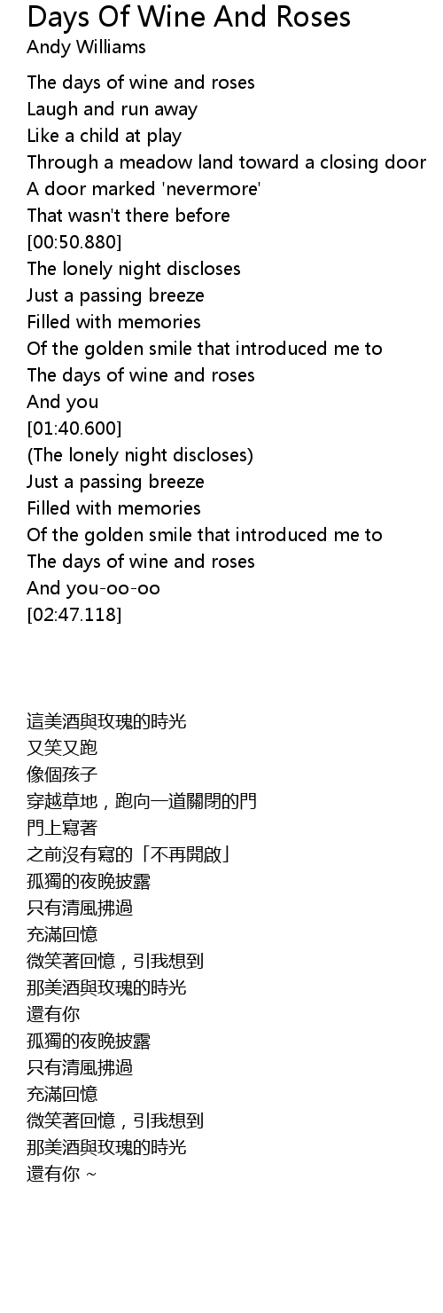 | [02:19.898] | The days of wine and roses |