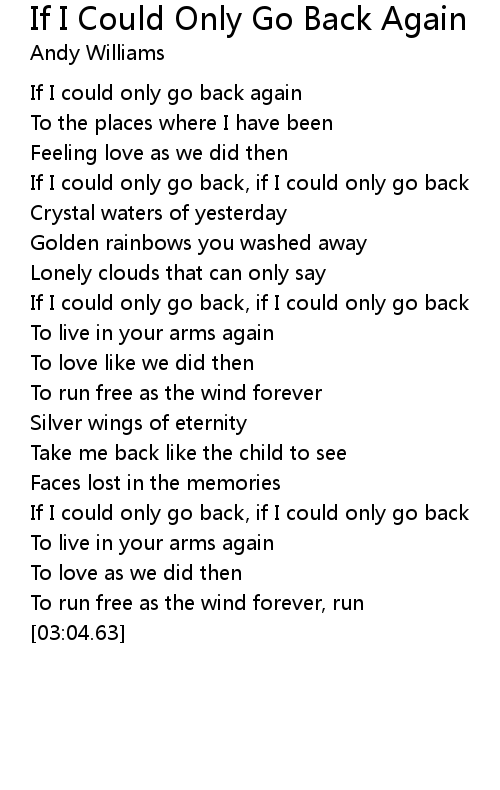 If I could only go back, if I could only go back |