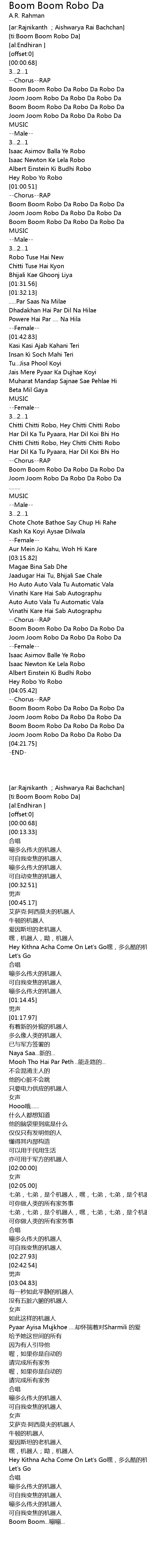 | [00:24.71] | Boom Boom Robo Da Robo Da Robo Da |