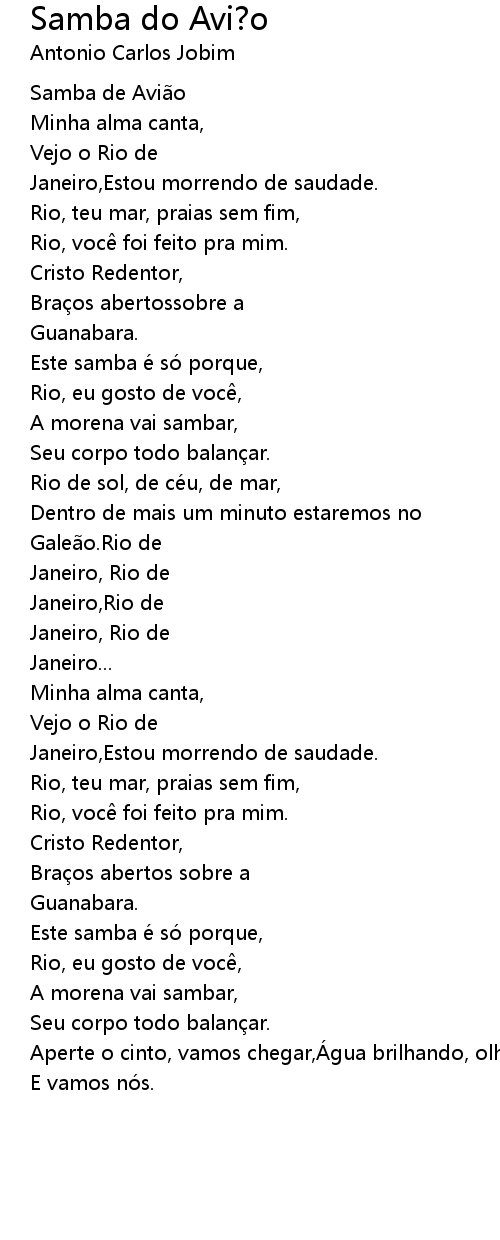 | Song | Samba do Avi?o |