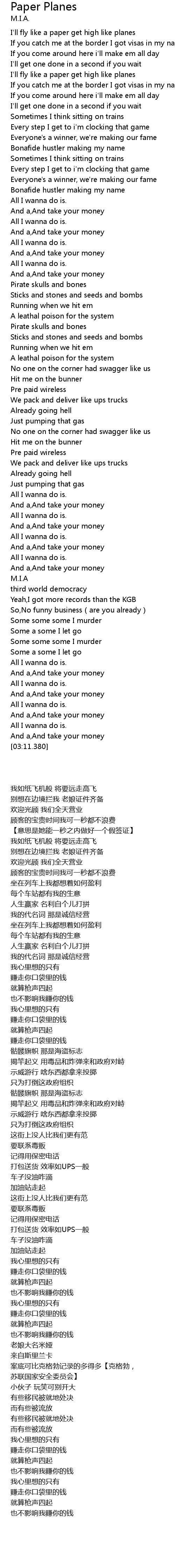 | [00:22.680] | I' ll fly like a paper get high like planes |