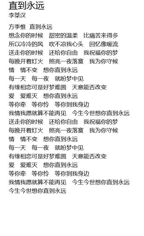 | [01:05.15] | 情 情不变 想你直到永远 |