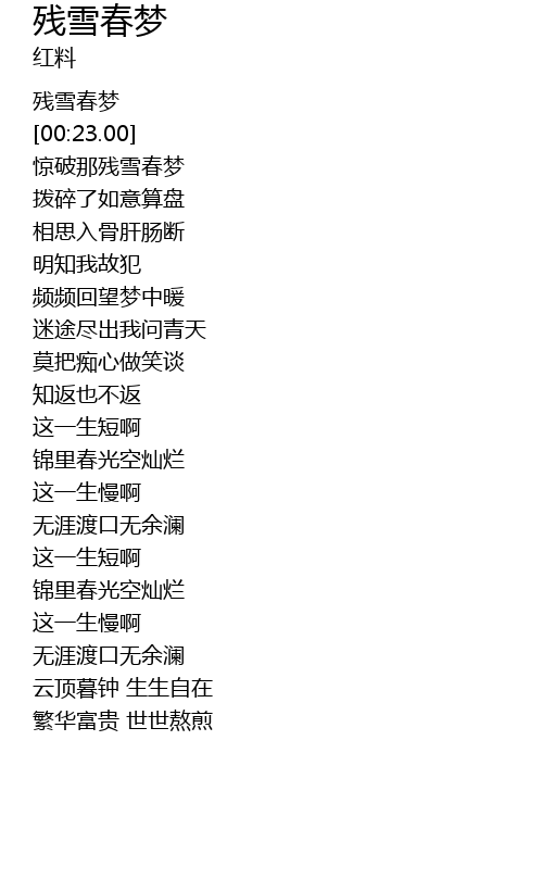 | [00:45.00] | jīng pò nà cán xuě chūn mèng |