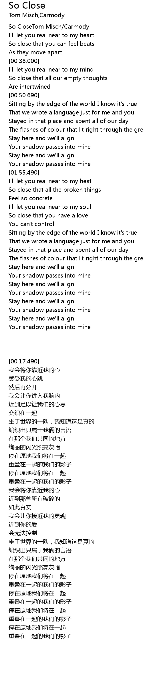 | [00:17.490] | So CloseTom Misch/Carmody |