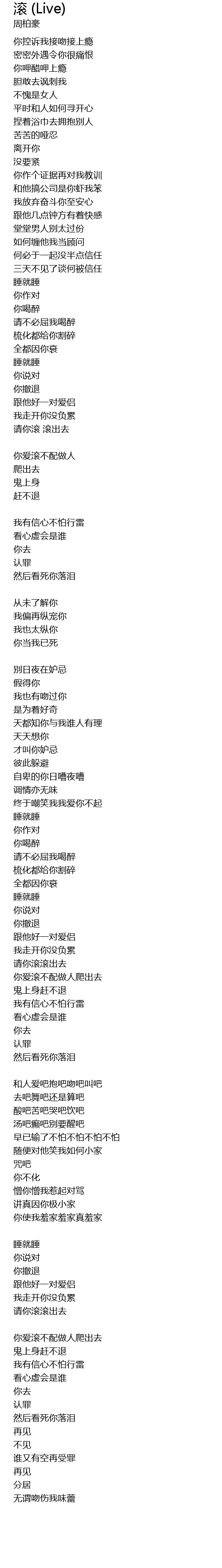 | Song | 滚 (Live) |