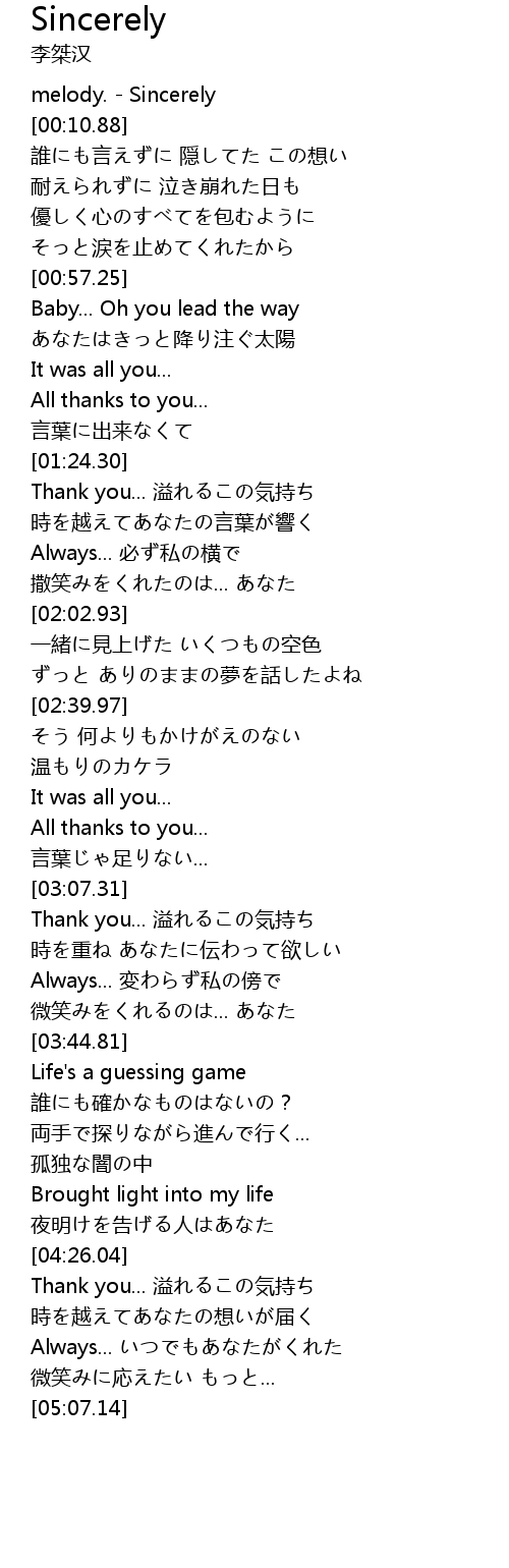 | [00:07.61] | melody. - Sincerely |