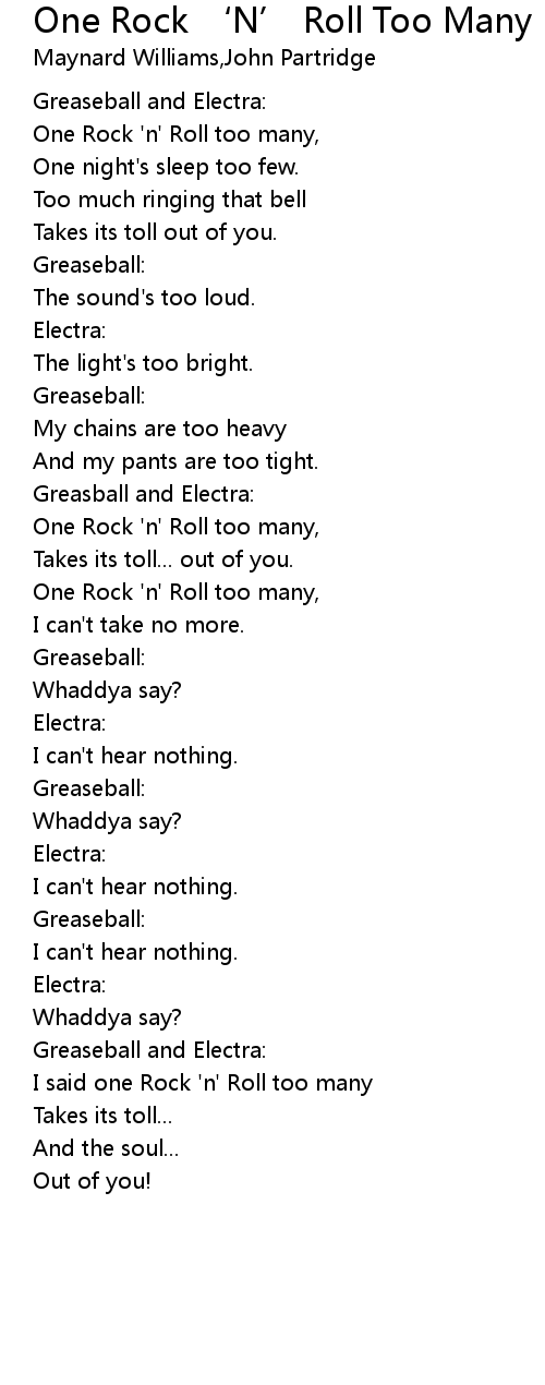 One Rock 'n' Roll too many, |