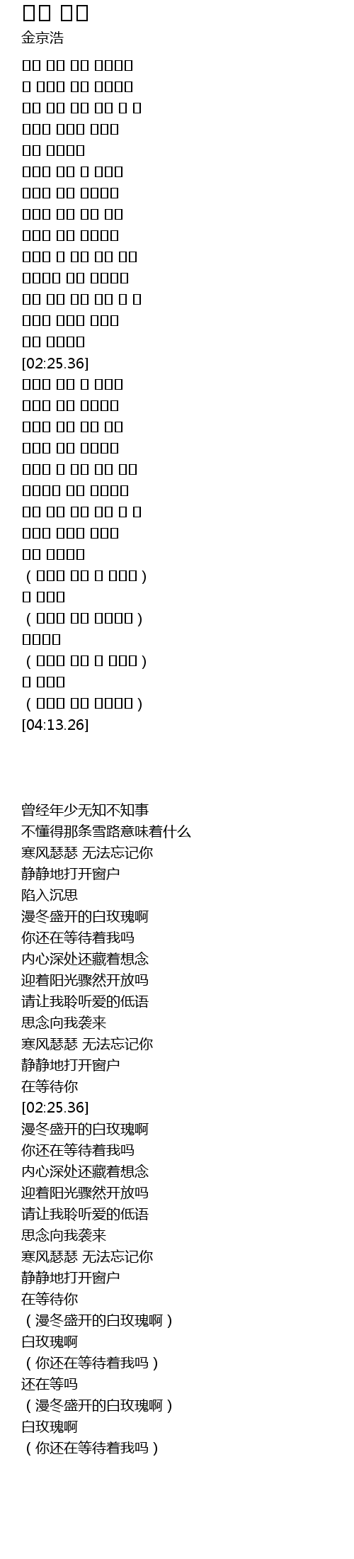 | [03:58.91] | (겨울에 피는 흰 장미여) |